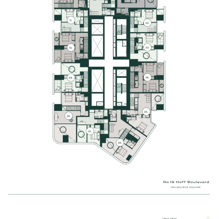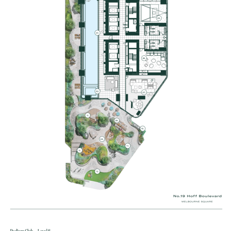 Communal access to podium level 8 at Melbourne Square further enhances the exceptional lifestyle opportunities available to residents. This access extends to wellness and relaxation amenities, vibrant experience-based areas, and a multitude of expansive outdoor terraces, creating a truly exceptional living experience.