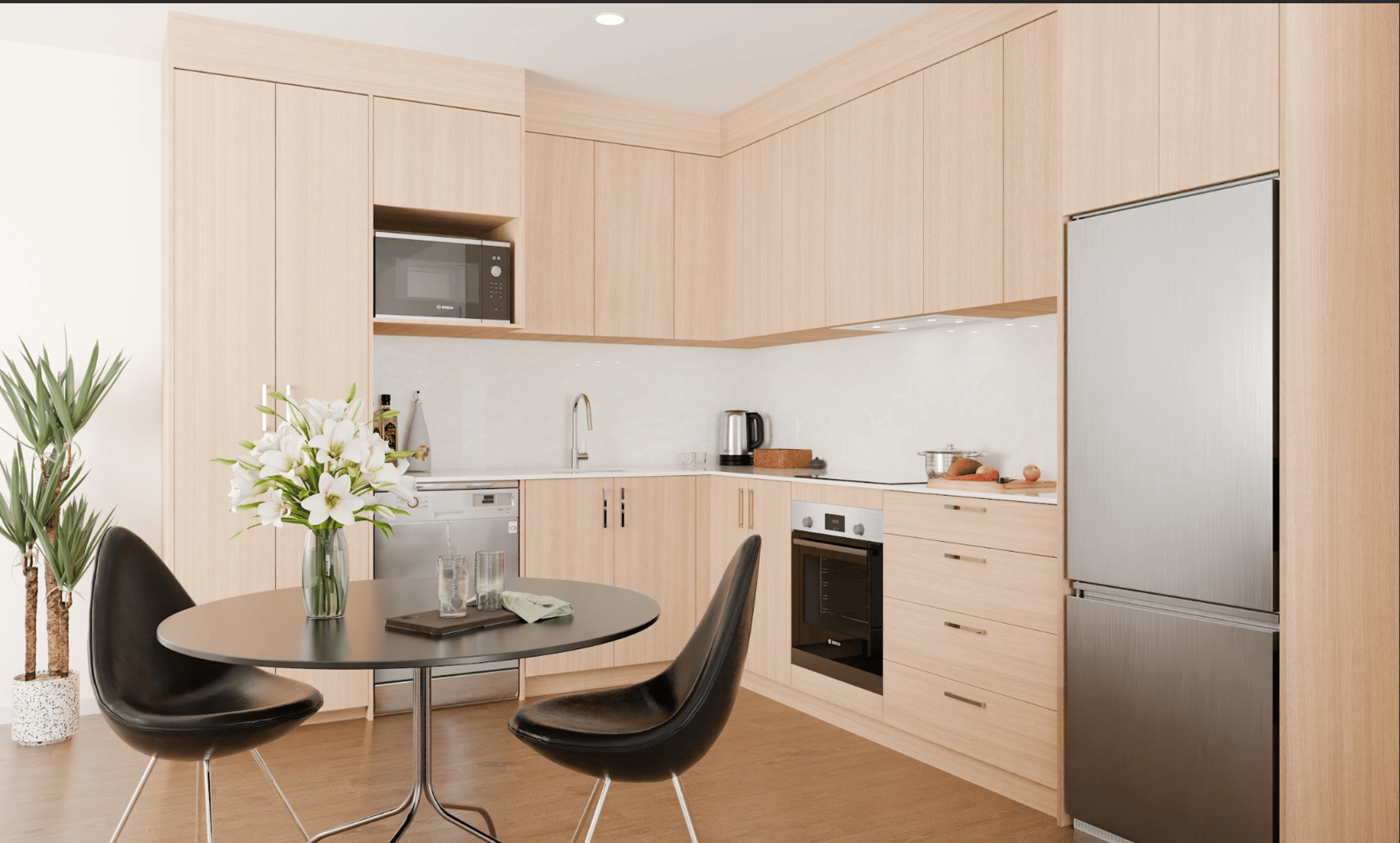 Step inside Mountain Oak and discover interiors crafted with style, comfort, and practicality in mind. Each apartment is thoughtfully designed with open-plan layouts that maximise space, natural light, and stunning alpine views. Premium kitchens are fitted with quality appliances and sleek finishes, making cooking and entertaining effortless. Bathrooms feature elegant tiling, underfloor heating, and modern fittings that add a touch of luxury to everyday living.
