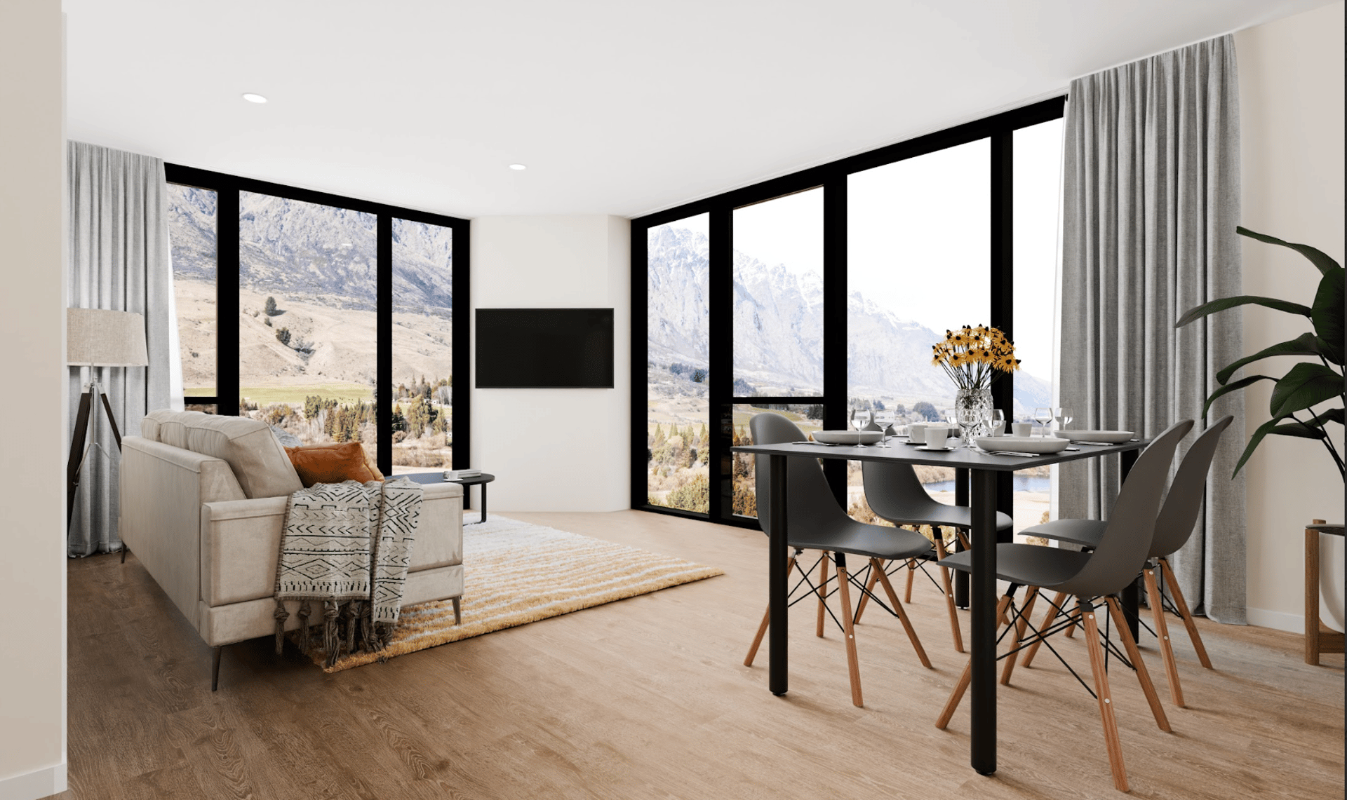 Acoustically treated flooring ensures peace and privacy, while large windows frame Queenstown’s breathtaking landscapes, seamlessly blending the indoors with the outdoors. Neutral colour palettes create a timeless backdrop, allowing owners to personalise their homes with ease. From smart storage solutions to flexible layouts such as dual-key designs, every detail has been considered to support both comfortable living and strong investment value.