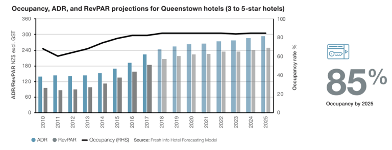 Queenstown’s reputation as a luxury travel hub continues to rise. The demand for five-star accommodation is set to grow from 75% in 2017 to 85% by 2025, driven by: